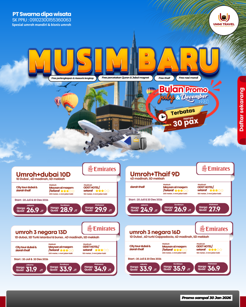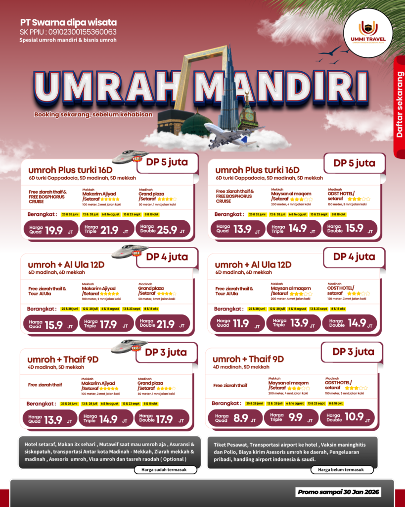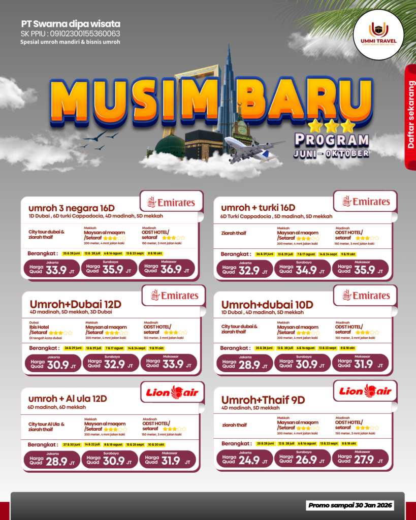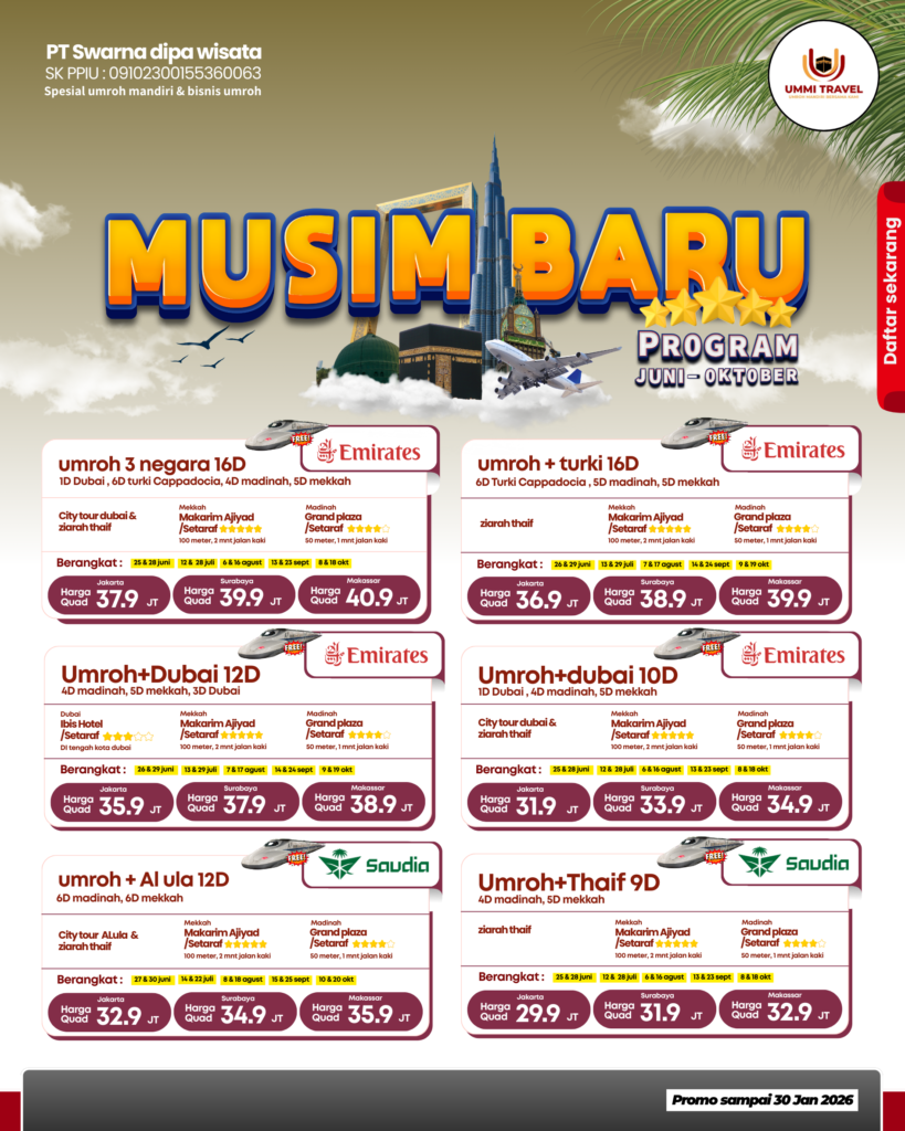 Dengan paket dari UMMI TRAVEL harga bersahabat dan pastinya umrohmu bakalan aman dan menyenangkan